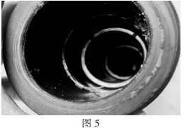 事端分支箱電纜終端所運用的硅脂密封功用不良,故障發生后,當拆撥其它兩相電纜頭時,由于硅脂出現干枯粘結(如圖5),需求多人合力才調撥出,可見硅脂已不能起到潤滑防潮與絕緣的效果,不能與電纜頭同“呼吸”,彈性功用大為下降。