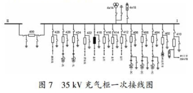 在某變電站結合新投設備初度停電檢修時對35kV充氣柜進行了例行試驗,包括交流耐壓試驗、回路電阻檢驗和斷路器機械特性檢驗。35 kV充氣柜一次接線圖如圖7所示。