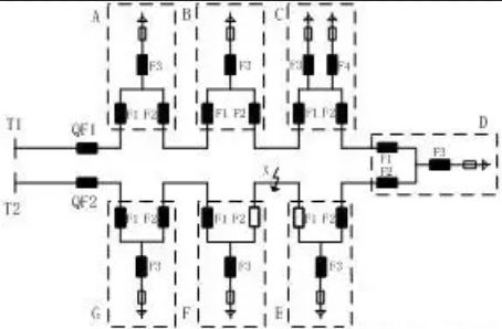 一般由3個距離組成,包括兩個進出線距離和變壓器距離。進出線距離首要用于缺陷線路的阻隔,以及通過調整電源方歷來恢復正常供電。變壓器距離則通過組合電器來對變壓器內部短路缺陷進行快速切除。